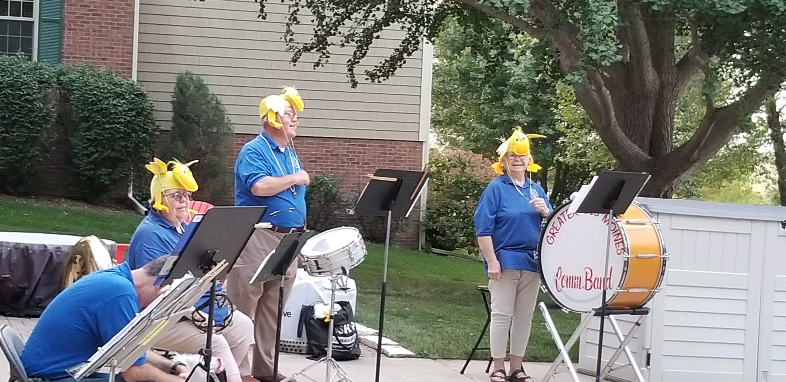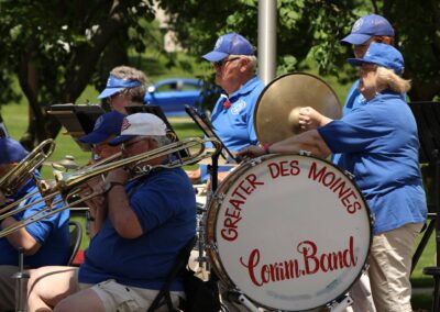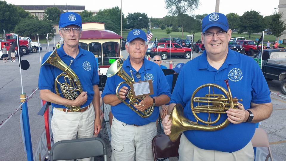 The band rehearses for 90 minutes each Monday in preparation for the Fall, Winter and Spring Sunday concerts and to prepare for the annual Summer Concert Series.  Due to popular demand, the summer concert series has grown to some 18 performances throughout the greater Des Moines area, including Adel, Norwalk, West Des Moines, Windsor Heights, Boone, Indianola, Bondurant, and the Iowa State Fair.